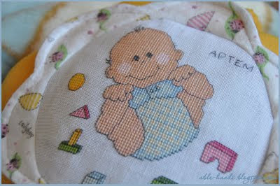 Просматривая один итальянский журнальчик в поисках идеи для обменных подарочков, наткнулась на схемы и идеи для малышей. И так захотелось мне сделать что-то на детскую тематику!! А тут как раз сотрудница пригласила на крестины... и завертелось!